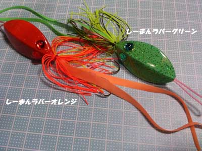 | 3) | しーまんラバー 70g | 赤 ・ オレンジ ・ 黄色 ・ グリーン ・ シルバー ・ ゴールド | 1200円(税別) |